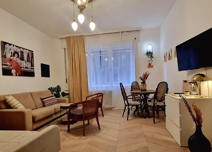 35m²のCharming Center Apartman ブダペストはセーチェニ温泉から2.7キロメートルの距離で、ハンガリー国立歌劇場から歩いてわずか6分の場所にあります。